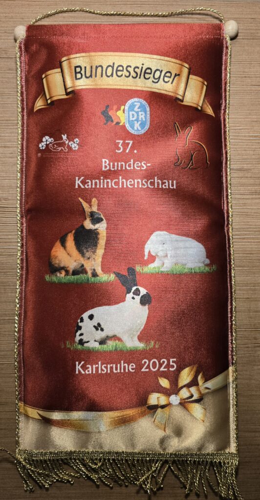 In Karlsruhe zur 37. Bundes-kaninchenschau konnte ich die Sieger Häsin mit 97,5 Punkten stellen.